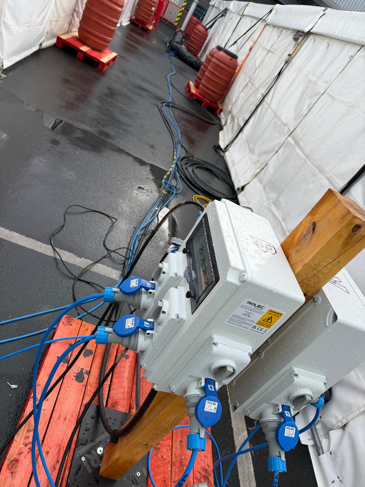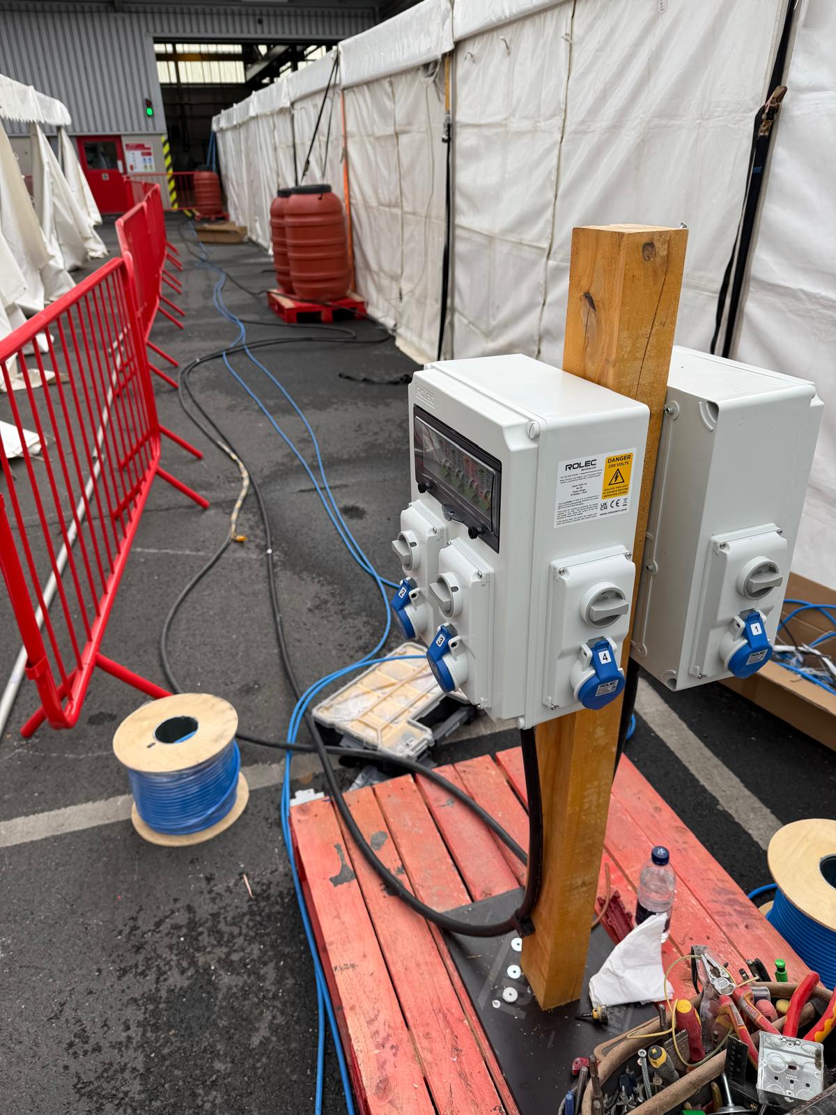 Complete temporary electrics for PeriFest, Essex. Fully managed in house with electrical support throughout the night. We used the Rolec splitter box for the distribution of temp supply’s.